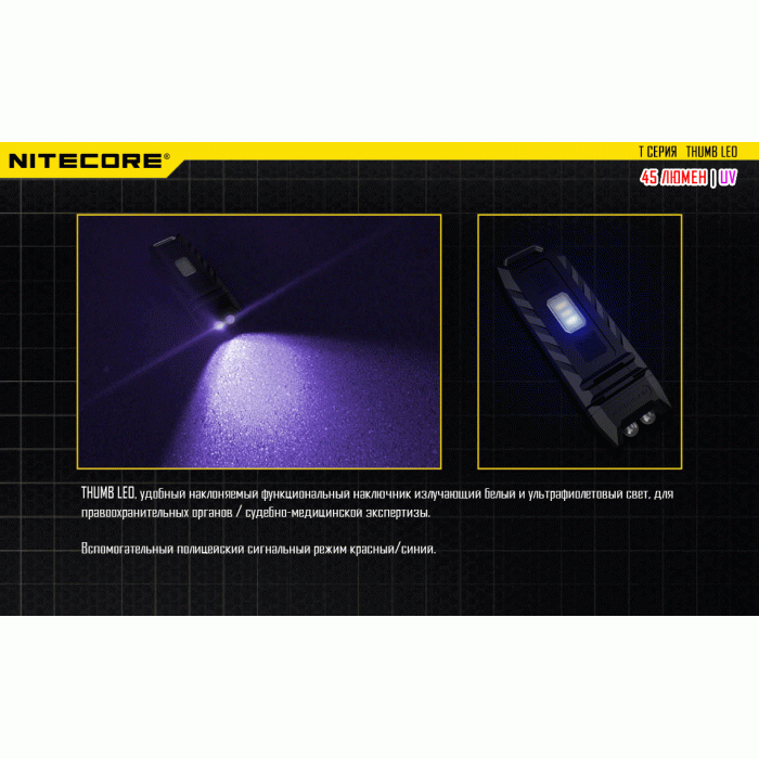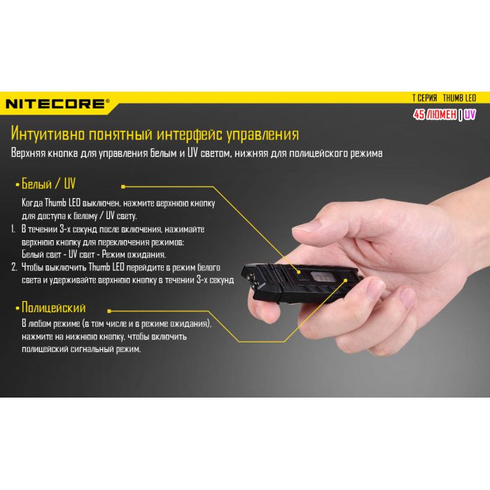 Фонари - Фонарь многофункциональный Nitecore THUMB LEO (1LED+UV LED, 45 люмен, 3 режима, USB)