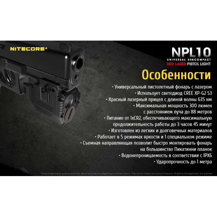 Цена: 5500 грнКол-во:Данный фонарь пистолетный Nitecore NPL10 работает в таких режимах: