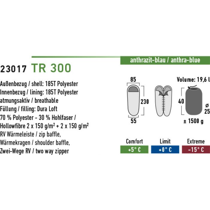 Туризм - Спальный мешок High Peak TR 300 / +0°C (Left) Black/blue